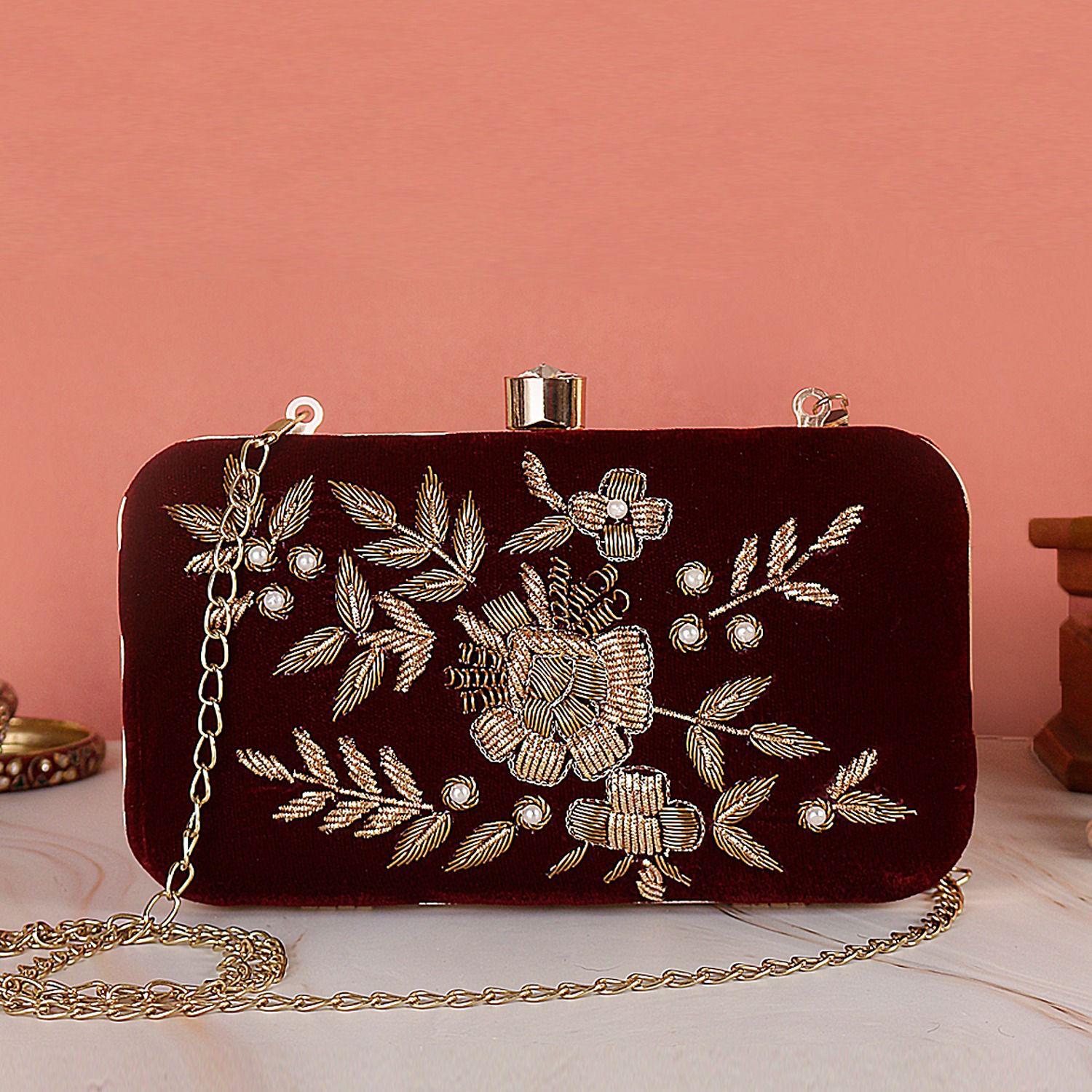 Maroon Embroidered Clutch